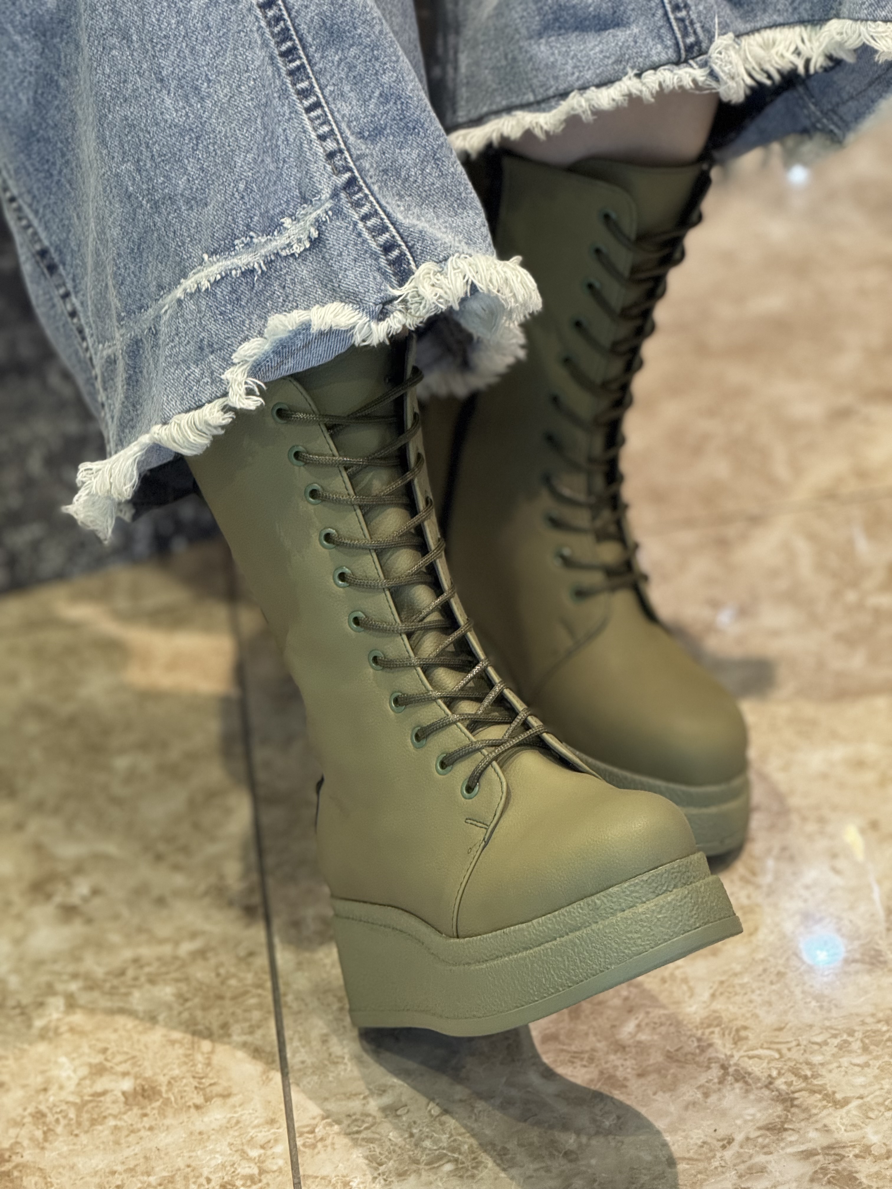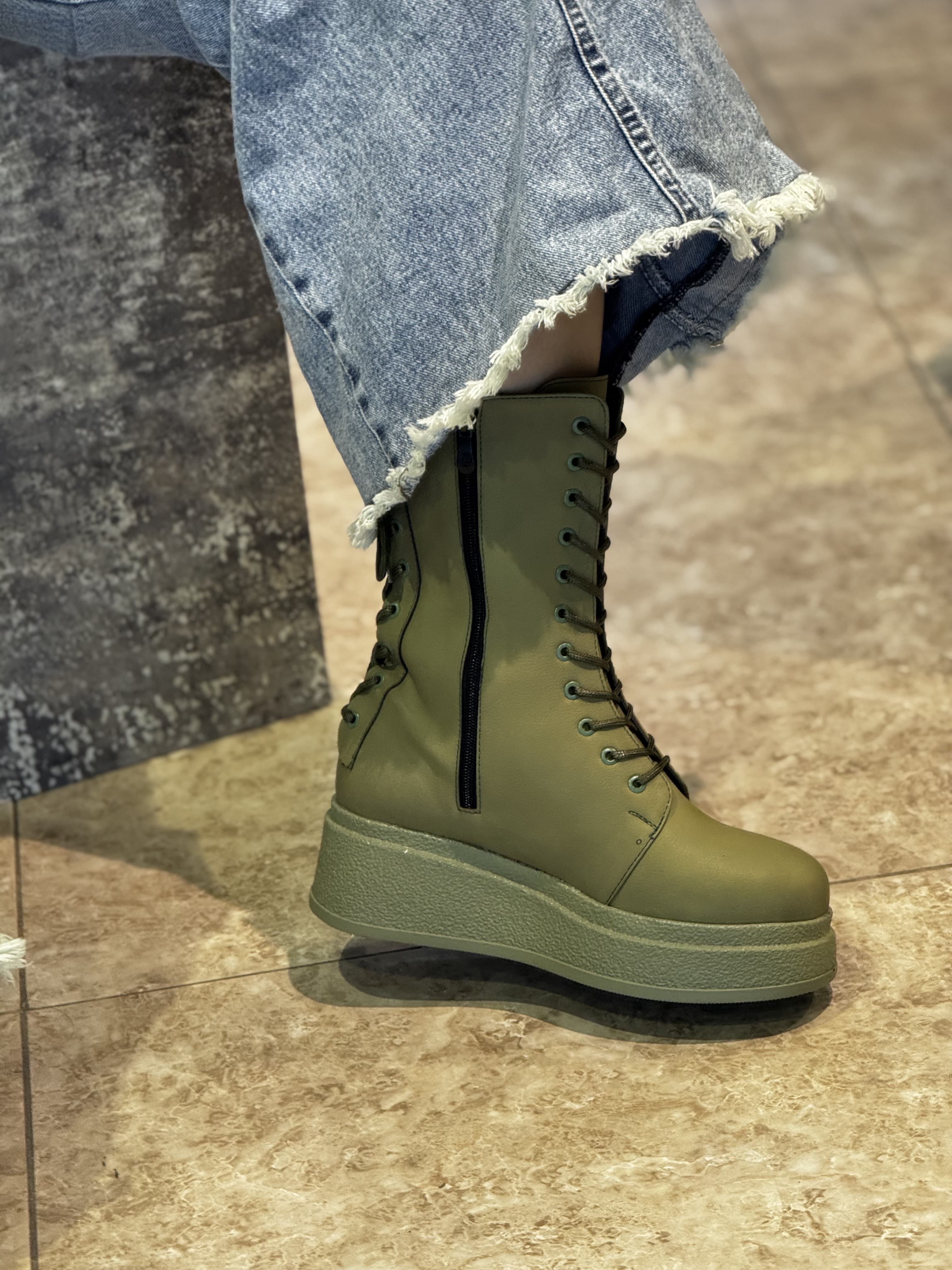 بوت لژ دار بندی که علاوه بر بند زیپ هم داره که پوشیدنش رو خیلی آسون میکنه قالب اینکار بزرگه‼️ (یک سایز کوچیکتر انتخاب کنید)